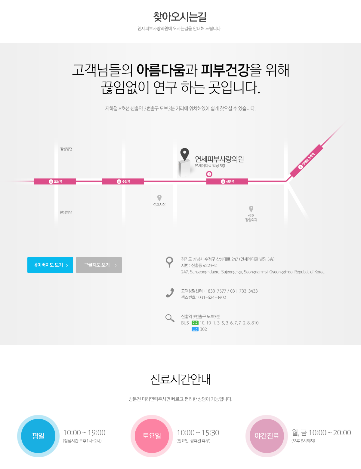 〈 개인정보취급방침 〉 연세피부사랑의원의 개인정보보호를 매우 중요시하며, 『개인정보보호법』을 준수하고 있습니다. 본원은 개인정보처리방침을 통하여 귀하께서 제공하시는 개인정보가 어떠한 용도와 방식으로 이용되고 있으며 개인정보보호를 위해 어떠한 조치가 취해지고 있는지 알려드립니다. ■ 수집하는 개인정보의 항목 및 수집방법 본원은 회원가입 시 서비스 이용을 위해 필요한 최소한의 개인정보만을 수집합니다. 귀하가 본원의 서비스를 이용하기 위해서는 회원가입 시 필수항목과 선택항목이 있는데, 메일수신여부 등과 같은 선택항목은 입력하지 않더라도 서비스 이용에는 제한이 없습니다. [진료정보] (1) 수집항목 : 성명, 생년월일, 이메일, 주소, 연락처, 진료기록 (2) 건강정보 : 병력, 수술이력, 가족력 등 진료서비스 제공을 위하여 의료진이 필요하다고 판단되는 건강정보 ※ 의료법에 의해 고유식별정보 및 진료정보를 의무적으로 보유하여야 하여야 함(별도 동의 불필요) [홈페이지 회원가입 시 수집항목] (1) 필수항목 : 성명, 생년월일, 아이디, 비밀번호, 이메일, 주소, 연락처(전화번호, 휴대폰번호) (2) 서비스 이용 과정이나 서비스 제공 업무 처리 과정에서 다음과 같은 정보들이 자동으로 생성되어 수집될 수 있습니다. : 서비스 이용기록, 접속 로그, 쿠키, 접속 IP 정보 [개인정보 수집방법] (1) 다음과 같은 방법으로 개인정보를 수집합니다. 홈페이지(회원가입, 온라인상담, 진료예약, 카톡상담, 비용상담, 상담 및 예약), 서면양식, 팩스, 전화, 이메일, 모바일상담 [쿠키(Cookies) 또는 개인정보 자동 수집 장치 설치/운영 및 거부에 대한 사항] (1) 웹 사이트는 이용자에게 관심기반 맞춤형 광고 제공을 위해 “쿠키”기술을 사용하고 있으며 이때 사용되는 쿠키에는 개인을 식별하는 어떠한 정보도 포함되어 있지 않습니다. (2) 그리고 웹사이트(URL)에서는 Daum, 크리*, GD*와 같은 외부 광고 제휴업체가 ‘관심기반 맞춤형 광고’를 게재하고 있으며 이용자는 언제든지 관심기반 맞춤형 광고 수신을 거부할 수 있습니다. ■ 개인정보의 수집 및 이용목적 본원은 수집한 개인정보를 다음의 목적을 위해 활용합니다. 이용자가 제공한 모든 정보는 하기 목적에 필요한 용도 이외로는 사용되지 않으며 이용 목적이 변경될 시에는 사전 동의를 구할 것입니다. [진료정보] (1) 진단 및 치료를 위한 진료서비스와 청구, 수납 및 환급 등의 원무서비스 제공 (2) 건강정보사항 : 상담 및 진료 시 원활한 서비스 제공을 위한 참조자료 사용 [홈페이지 회원정보] (1) 필수정보 : 홈페이지를 통한 진료 상담, 진료 예약, 예약조회 및 회원제 서비스 제공 (2) 선택정보 : MMS, SMS, SNS, 이메일을 통한 본원소식, 질병정보 등의 안내, 설문조사 ■ 개인정보의 보유 및 이용기간 본원은 개인정보의 수집목적 또는 제공받은 목적이 달성된 때에는 귀하의 개인정보를 지체 없이 파기합니다. [진료정보] (1) 의료법에 명시된 진료기록 보관 기준에 준하여 보관 [홈페이지 회원정보] (1) 회원가입을 탈퇴하거나 회원에서 제명된 때 다만, 수집목적 또는 제공받은 목적이 달성된 경우에도 상법 등 법령의 규정에 의하여 보존할 필요성이 있는 경우에는 귀하의 개인정보를 보유할 수 있습니다. (2) 소비자의 불만 또는 분쟁처리에 관한 기록 : 3년 (전자상거래 등에서의 소비자보호에 관한 법률) (3) 신용정보의 수집/처리 및 이용 등에 관한 기록 : 3년 (신용정보의 이용 및 보호에 관한 법률) (4) 본인 확인에 관한 기록 : 6개월 (정보통신망 이용촉진 및 정보보호 등에 관한 법률) (5)- 방문에 관한 기록 : 3개월 (통신비밀보호법) ■ 개인정보의 파기절차 및 그 방법 본원은 『개인정보의 수집 및 이용목적』이 달성된 후에는 즉시 파기합니다. 파기절차 및 방법은 다음과 같습니다. [파기절차] 이용자가 회원가입 등을 위해 입력한 정보는 목적이 달성된 후 파기방법에 의하여 즉시 파기합니다. [파기방법] 전자적 파일형태로 저장된 개인정보는 기록을 재생할 수 없는 기술적 방법을 사용하여 삭제합니다. 종이에 출력된 개인정보는 분쇄기로 분쇄하거나 소각하여 파기합니다. ■ 개인정보 제공 및 공유 본원은 귀하의 동의가 있거나 관련법령의 규정에 의한 경우를 제외하고는 어떠한 경우에도 『개인정보의 수집 및 이용목적』에서 고지한 범위를 넘어 귀하의 개인정보를 이용하거나 타인 또는 타기업ㆍ기관에 제공하지 않습니다. (1) 국민건강보험법에 의해 건강보험심사평가원에 요양급여비용 청구를 위한 진료기록 제출 (2) 통계작성ㆍ학술연구를 위하여 필요한 경우 특정 개인을 알아볼 수 없는 형태로 가공하여 제공 (3) 법령에 정해진 절차와 방법에 따라 수사기관의 요구가 있는 경우 제출 등 ■ 동의철회 / 회원탈퇴 방법 귀하는 회원가입 시 개인정보의 수집ㆍ이용 및 제공에 대해 동의하신 내용을 언제든지 철회하실 수 있습니다. 회원탈퇴는 병원 홈페이지 마이페이지의 『회원탈퇴』를 클릭하여 본인 확인 절차를 거치신 후 직접 회원탈퇴를 하시면 지체 없이 귀하의 개인정보를 파기하는 등 필요한 조치를 하겠습니다. ■ 개인정